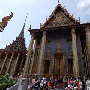 友人と二人で参加しました、前日到着時間が遅く朝は朝食がおいしいと評判のディシュタニホテルに宿泊していたのでゆっくりしたかったので午後からの観光にしました、当日は雨季でとても暑く前国王の葬儀が1年間続いているとの事で国民のお参りもありとても王宮など混んでいましたがガイドさんの案内で効率よくまわれて良かったと思います、暑さの中三大寺院でちょうどよく帰宅後ホテルの近くで買い物などもできました。