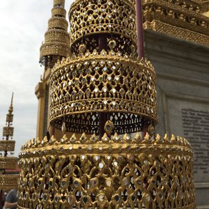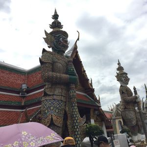 ワット・プラケオでは国王のお葬式を執り行っていることも合わさって観光客だけでなくタイ国民もたくさんいて、ここを自力で観光するのは大変だろうと感じました。格式高い寺院なので警備や服装のチェックが厳しいのがとても印象的でした。もし規定に反する服装をしてきて現地でそれを隠すタイパンツを現地で買うことができます。タイパンツで寺院を巡るのも情緒があって素敵だと思いました。
