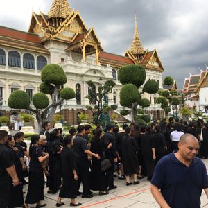 事前案内通り、3ヶ所の寺院を訪問。前国王崩御により予定変更があるかと思いきや、予定通りのコースとなった。違いは過去の国王の宮殿で博物館になっているところが、前国王の葬儀場予定となり入場ができなかったことと、地方から前国王への弔問に訪れる方で王宮が大変混んでいたことくらい。この影響で送迎バンの駐車場が遠くなり、結構歩くツアーとなった。