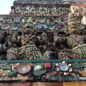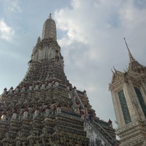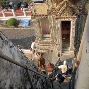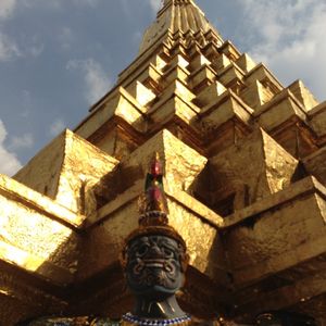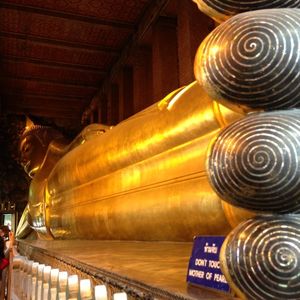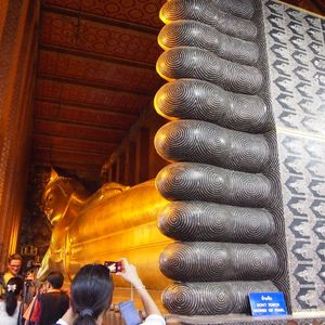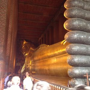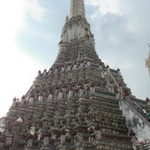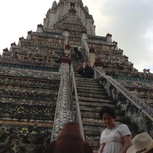 エメラルド寺院の素晴らしい建築物の数々にも感動しましたがワットポーの涅槃像には圧倒されました。暁の寺院(ワットアルン)も素晴らしかったです。ワットアルンに上りましたが勾配が急で階段幅が狭くかなり危険です。上ったはいいが怖くて下りられない人続出のため、上るのであれば足腰の強い方、度胸のある方にお勧めします。