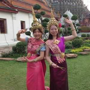 フリープランだったので、半日で三大寺院を効率よく回れたのですごくよかったです!もう少し見たかったなという所が正直ありましたが、きっと個人で行っていたらキリがなく時間がかかりすぎていたと思うので、パッパッパと見れてよかったです。ガイドさんも日本語が堪能で、タイの歴史や文化を教えていただきました!私たちは、家族四人と男性お一方の5人グループだったのですが、わたしがどうしても民族衣装を着て写真を撮りたかったので、ガイドさんにお願いすると時間調節していただきました、着て撮影することが出来ました☆男性の方には申し訳なかったんですが、すごく良い方で「せっかくなので」と了承いただけました(^_^)