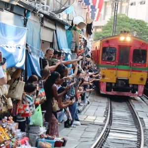 半年前からバンコクに住んでいますが、メークロン線路で電車に乗り、窓から線路沿いの観光客とハイタッチがしたく参加しました🚃