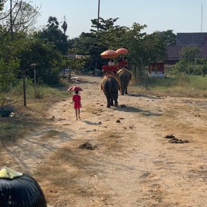 アユタヤには、ゾウに乗れる場所が2箇所ありますが、行ったところは、田舎の田園風景の中を歩く素朴な場所でした。2日前には、とてもきれいな池がある風景が素敵なところでしたが、ゾウのう上に乗るベンチは、しっかりと足のせ台があり、ゾウに触ることができなかったのですが、今回は、素朴なため、足はゾウの頭におかれ、ゾウを触れ放題です。素敵な景色の中でフォトジェニックな写真を撮るのもいいですが、ゾウに触れる醍醐味は、捨てがたい。