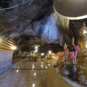 最初は、タイらしい色彩の美しい、洞窟寺。洞窟は本当に洞窟で、屈んで通る狭さのところもあるしコウモリがキーキー鳴いていました。ちょっと臭いもあります。雨だとツラいと思います。