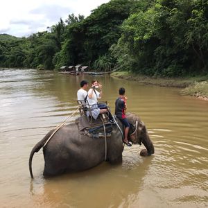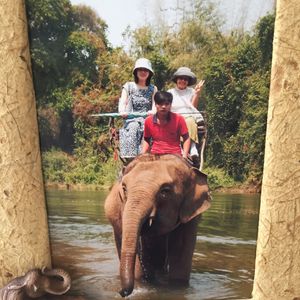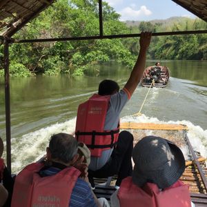 カンチャナブリはバンコクからかなり距離があるのでバスで行けたのは本当に良かったです。象乗りも始めての体験で、結構揺れたのでビックリでしたが日本では体験できない体験で良かったです。降りた後に自分が象に乗った写真を200バーツくらいだったかな?で売ってます。可愛いフレームに入っていたので買いました✨いかだ下りは結構安定していて落ちないかという不安はありませんでした。景色が綺麗で緑と静かな川に癒されました✨