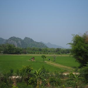 その後は、泰緬鉄道のローカル列車に乗り、埃っぽい赤土の広大なタピオカ畑、雑草のようにそこら辺に自生するバナナとパパイヤ、南国らしいおおきな木など異国情緒溢れる車窓からの風景を楽しみつつ移動。