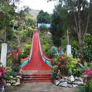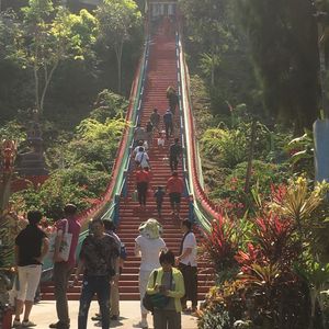 まずは長い階段を登り洞窟のお寺へ