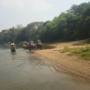 映画「戦場にかける橋」を見てから行ったので感慨深い思いでした。いかだも映画のワンシーンのような。ゾウ乗りは私達の前にも後にもお客様がいなかったせいか、途中でゾウ使いのお兄さんはゾウから降りて木に登り、葉っぱやブーゲンビレアを採ってきて花の冠を作ってくれました。もちろん多めにチップをはずみました。