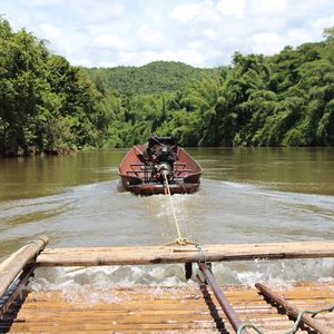 いかだ下りはボートで川上に運んでもらってから、