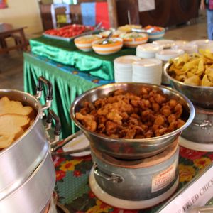 お昼ご飯はオープンエアーのレストランでインターナショナル・ビュッフェ。正直あまり美味しくはありません。