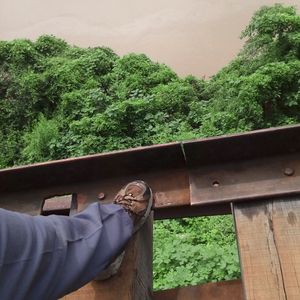 戦場にかける橋を歩いて渡っている途中で、往復した電車が迫ってくる。