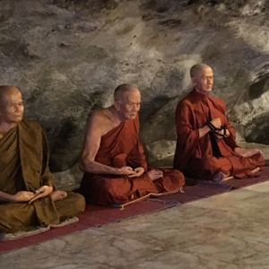 黄金龍の洞窟寺院。短い距離ですが、しゃがんで岩と岩の間をすり抜けたり、はしごを登ったり、ちょっとした探検。おしゃれ靴NG、リュックサックがおすすめですね。