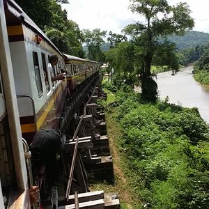泰緬鉄道を眺めるレストランで昼食ビュッフェのあとは、実際に乗車。