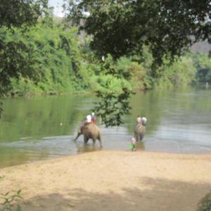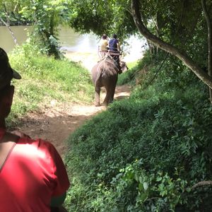 バンコクやインドでも象乗り体験は経験ありますが、こちらの象乗りは川に入ったり、山を下ったりとなかなか動きがハード。また希望者は象使いの座っている頭の上に移動して写真を撮ってもらえたり、餌やりも山の中でワイルドな感じで楽しかったです。泰緬鉄道は時間がはっきりせず、待ち時間が長かったですが、話のタネに乗れてよかったです。