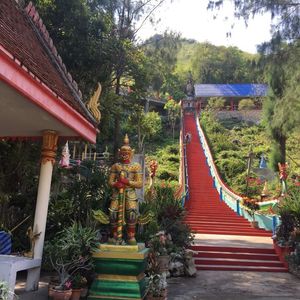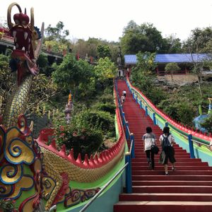 はじめに、とても長い階段の両脇に鎮座する蛇神が、登る人たちを迎えるお寺に到着しました。