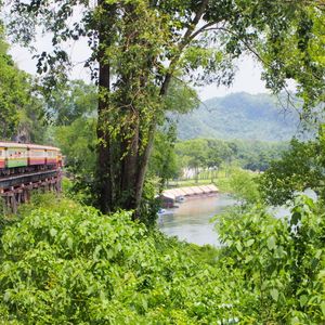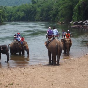 バンコク市内や遺跡めぐりとは違い、よい経験ができましたが、ただそれほど感動はどうかは-人によるかな。泰緬鉄道は観光客でゴッタがえしてるのがびっくり。途中の洞窟の寺は感動しましたが。象のりと、いかだは若い人向けかな!象には調教師?が乗るところの首に乗せてくれました。なかなか怖い!