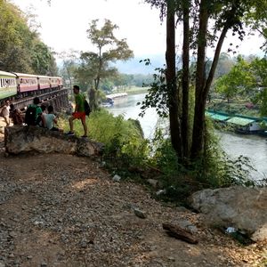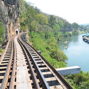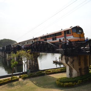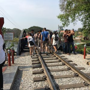 カンチャナブリのクエー川鉄橋の見学です、観光地化されていますがローカル鉄道で情緒があります列車が来るまでは自由に線路内を歩いて散策が出来るのもお薦めです。