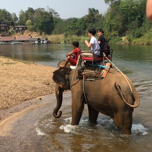 そしてお待ちかね、象乗り体験。観光地での象乗りとは違い、象が自然の中を歩くので、動きもよりダイナミックで迫力があります。象が川の中を歩く時は感動しました。1人だけですが途中で象の頭の上に乗せてくれ、今回もまた写真を撮ってくれます。いい記念写真がたくさん撮れます。