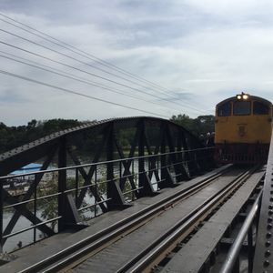 戦場にかける橋は まだ来ないだろうと高を括っていたら、汽笛一斉汽車の姿が見え、夫婦であせりました。避難場所は大混雑。観光地化されているようで かなりゆっくり汽車は動いていてすれすれの所にいましたが、危険な感じは全くしませんでした。