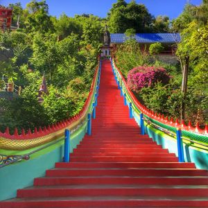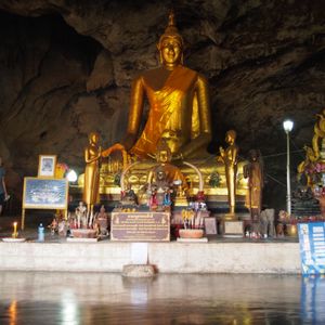 最初に訪れる洞窟寺は急な階段を上った後に参拝しますが、本当に洞窟の中に仏像が安置されています。洞窟の中はひんやりとしており非常に気持ちがいいです。