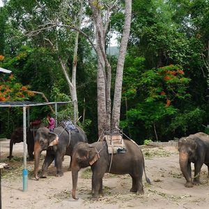 象使いのおじさん不在のまま象の背中で揺られていました。