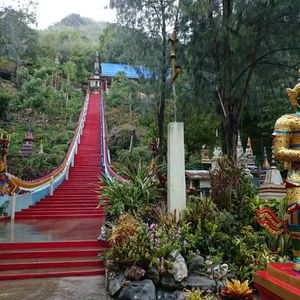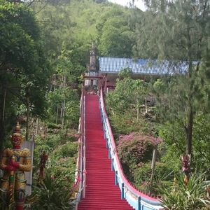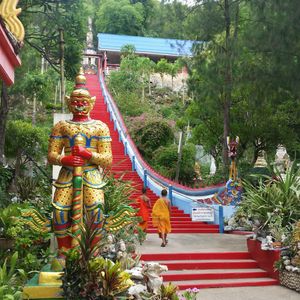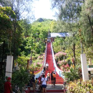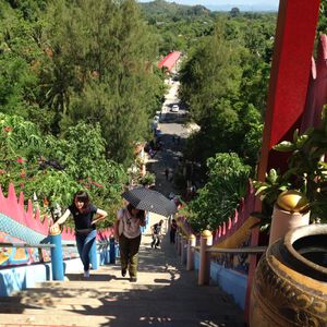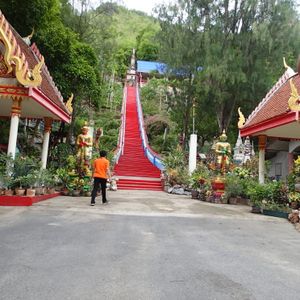 カンチャナブリー界隈で有名な観光地らしく、約100段近くの石段を登り切ったところ寺院が建ち、ご本尊?は洞窟に