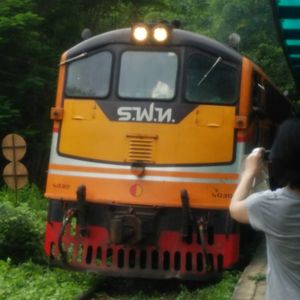 バンコクでにはない牧歌的な風景をゆっくり走るディーゼル鉄道