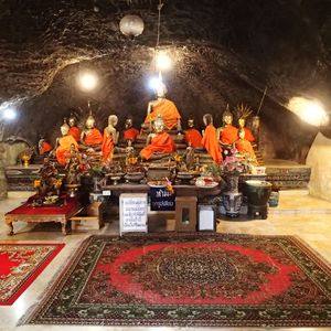 バンコク中心から数時間程、車で移動、途中給油をはさみ、ワット・タム・マンコーン・トーン ( 黄金の龍の洞窟寺院 ) を訪問