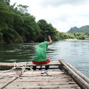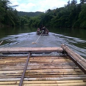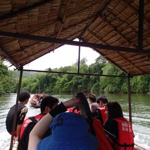 ツアーメンバー全員で竹で作ったいかだに載せられ、パワーボートで河の中央まで牽引され、そこからは二人のスタッフがいかだを櫂でゆっくり漕いでスタート地点に戻るというアクティビティでした。