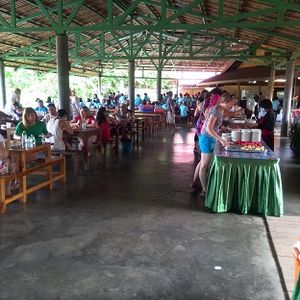 ランチはタイ料理ブュッフェどいうことですが、もちろん屋外で、暑さと虫との闘いです。虫除けスプレーをすると一時居なくなりますが、しばらくすると手足,料理に容赦なくたかってきます。暑さと虫に耐えられれば、川を望むとてもロケーションの良いレストランです。タイカレー美味しかったです!