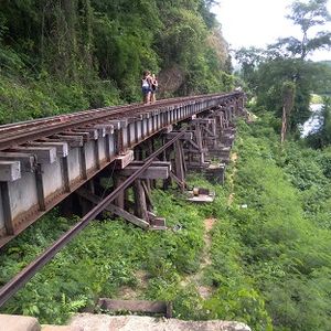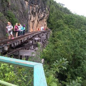 クウェー川鉄橋では、現在も使用している鉄橋を実際に渡る事でき、とても貴重な体験ができました。週末ということもあるのかものすごい人でした。