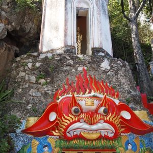 九十段近くある階段を登った先に洞窟があり、その中には沢山の仏像が祀られていました。持参した線香に火を付け拝み、洞窟内意外に広いね〜なんて話をし、いざ洞窟の奥へ…と思うといきなり這う様な姿勢で洞窟へと進入することになります。