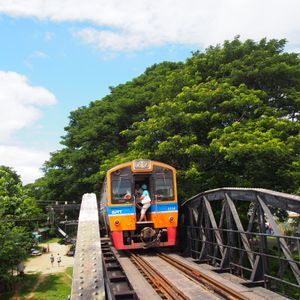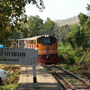 旅行の日取りがなかなか決まらず、ぎりぎりで申し込んだツアーでしたが、料金の割に大変質の良いツアーでとても満足でした。現地ガイドさんはとても気さくな方で、道中楽しく案内していただき、この点でもとてもポイントが高かったと思います。最初の訪問場所の洞窟寺は山の中腹にある洞窟にあるお寺でしたが、多くの現地の方が訪れており、タイの仏教を肌で感じる場所として大変良かったと思います。次に訪れたのは、クウェー川鉄橋でした。順番が行程表とことなっていましたが、この日はタイの休日にあたりとても人が多く、ガイドさんの判断で急きょ変更したとのこと。列車の出発を見届け、鉄橋を歩いて渡ることができました。旧日本軍が建設させた鉄橋は、当時の面影が残っており、風光明媚な農村にかかる橋は見る価値がありました。周囲には多くの屋台や市場があり、様々な国から訪れた人でにぎわっていました。雨季ということもあり、象のトレッキング前に一瞬雨が降りましたが、ツアーを通じて雨が降ったのはこの時だけでした。象のトレッキングは正直あまり期待してなかったのですが、今回の私たちのハイライトはここでした。まずは象の巨大さに驚き、川に向かう道には信じられないほど細い下り階段があり、象の背中にある手すりに必死につかまりながらの道のりはさながらジェットコースターのような感覚で、スリル満点でした。川に入り、川辺を登り、草原を歩き、驚くほど時間もたっぷりででした。象使いさんはとても気さくな方で、私たちのカメラでたくさん写真を撮ってくれました。次の筏の川下りは正直、あまり記憶に残る点はありませんでしたが、さながらジャングルクルーズで、参加していたお子さん方はとても喜んでいました。行程が前後したので、ここでようやく昼食にありつけました。バイキング形式で、イエローカレーや揚げ物など、種類は多くありませんでしたが、清潔感があるレストランで味は満足できました。やはり、時間がゆっくりと流れる国。昼食後の泰麺鉄道乗車時間がわからないということで、出発までのんびりと駅周辺を散策しました。この間に、ツアー参加者の皆さんとの交流もできました。天気も良く、泰麺鉄道の車窓からのタイの田舎ののんびりとした風景に、参加者の皆さんもたくさん写真をとっていました。下車して、バンコク市内まで数時間、寝て起きた時には集合場所に送り届けていただきました。出国前、個人的に列車で向かおうとしたカンチャナブリでしたが、体力的にもこのツアーに参加して正解でした。ツアー内容の充実さと、安全面、時間に無駄なく移動でき、また現地ガイドさんが上手な日本語で案内してくれるということなどなど・・・、とにかくタイに行ったときにはぜひ参加する価値のあるツアーだと思います。現地ガイドさんや運転手さん、象使いさんなど、お世話になりました。旅の素晴らしい思い出ができ感謝したいと思います。このたびは本当にありがとうございました。
