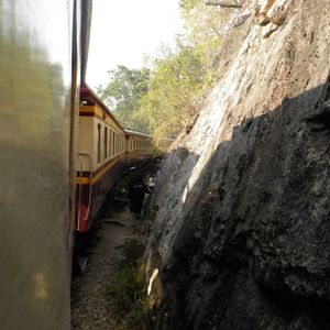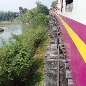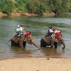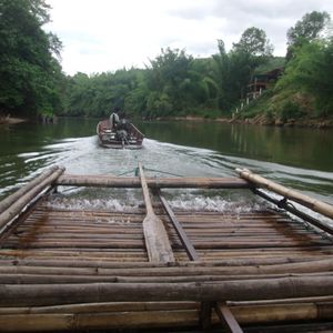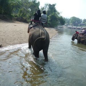 一言で言うと、久しぶりに童心に戻りました。当日の未明にホテルに着いて睡眠もそこそこに、朝7時からのツアーに参加してきました。順番は臨機応変に変更され、洞窟寺、泰麺鉄道の鉄橋見学、像乗り、筏、昼食、地元の鉄道乗車、ふんだんに盛り込んだツアーでしたが、どれも充実していました。洞窟寺は、中が非常に険しく、屈んでもなかなか前に進めず、四つん這いになるところもありました。鉄橋見学は30分程でしたが、写真を撮ったり、鉄橋を歩くにはちょうどいい時間でした。像乗りは、スリルありますよ。たぶん散歩コースなんでしょうが、坂道を下ったり、川に入ったり、また坂を上がったりと、大体30分~40分ほど乗っていたと思います。私たちの前には、像使いの少年が乗ってるんですが、友人は少年の代わりに、像の頭に直に座らせてもらってました。少年もサービス精神が豊富で、私たちのカメラで10枚以上も写真を撮ってくれたのです。筏乗りでは大河の中をゆったりと周遊して、しばし、時間の流れを忘れさせてくれました。昼食は食べ放題でしたが、そこそこ美味しかったです。というのも、朝からほとんど食べてなかったので。。。最後の鉄道試乗は、崖の上から見下ろす大河とスコールで猛然と雨に打たれる雄大な畑を見ながら、楽しいひと時を過ごせました。ツアーの全体を通して、ガイドさんがとても、親切丁寧に接してくれ、色々な場面で写真を惜しみなく撮ってくれました。総じて、大変有意義な時間を与えてくれたことに感謝します。この時間は数年分のアドベンチャー体験を一気に凝縮したツアーでした。