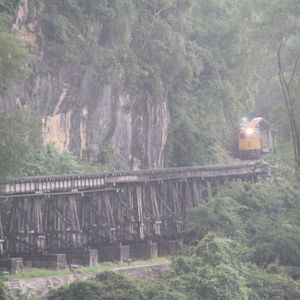 “戦場に架ける橋”…到着したときちょうど列車が橋を渡るところでした。