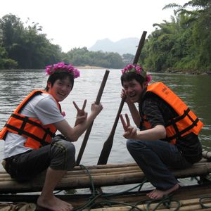 その後、筏下り。私たちの前の中国?からの観光客は一人泳いで戻っ