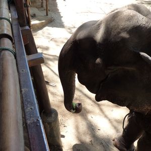 象さんに乗ってきました!途中で象使いの人が降りて、だんなと二人でのったまま川の中を入ったりしました。椅子からおりてじかにゾウさんの頭にのったりと、めったにできない体験ができました。象使いの方は写真をたくさん撮ってくれました。最後にバナナをあげましたが、鼻でとったりはもちろん直接口に入れたりと楽しかったです。だんなもよろこんでいて、写真を見てはまたゾウさんにあいたいなといっています。おすすめです!