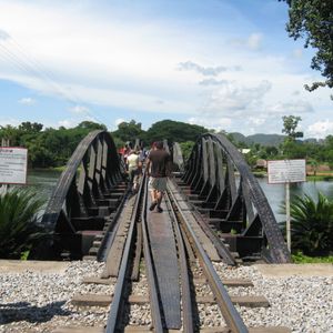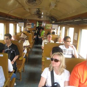 戦場に架ける橋で有名な、クウェ−川鉄橋とその鉄道に乗る旅ですが、若者の参加ゼロ、しかしバンコクから車で2~3時間のかなりの田舎の地で、約60年前、東南アジアを植民地としていた英国軍人、豪、米、などの捕虜を中心に血の鉄道として語り継がれる泰緬鉄道に乗りますが、20代30代で捕虜になった方も、日本から南方に派遣された日本軍人にしても祖国をはなれ、1月でも太陽照りつける泰の田舎で