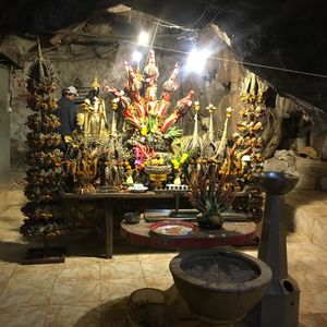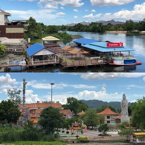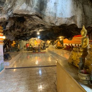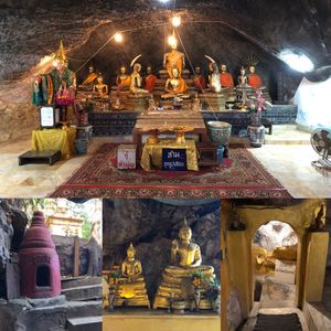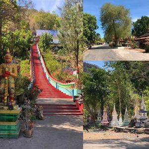 バンコクからカンチャナブリに向かい、最初は洞窟寺から始まりました。階段を登りましたが苦にはなりませんでした。別の方のレビューでコウモリの「糞尿の臭いが気になった」とありましたが、特に気にする程ではありませんでした。