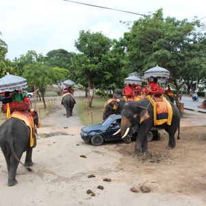 ゾウ乗り→水上マーケット→お昼→アユタヤ→アユタヤを見ながらのゾウ乗り→夜ゴハン→ライトアップ