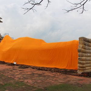 涅槃仏の足は一部修復中でした。