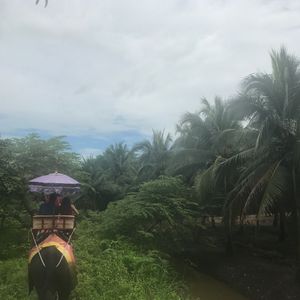 ヤシの木が生えた道を歩き、池の中も入りゾウ使いさんが写真を撮ってくれたり。楽しかったです!!