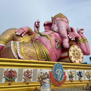 8/7に家族で参加しました。ホテルから1時間半と遠かったですが、ピンクのガネーシャにお祈りすることができて良かったです。次のワット・パクナムはガイド本の通り、スワロフスキーが散りばめられた天井が素晴らしく綺麗で極楽浄土のようでした。そこにいた警備員さんがインスタグラマーのような素敵な動画を撮ってくださり、想い出になりました。勿論チップをお支払いしました✨バンコクから遠いですが見る価値ありだと思います!