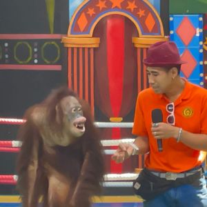 オラウータンのショー、写真撮影