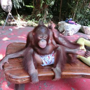 ツアー客は私たち2人だけだったので要らないshowは省いて回ってくれました。念願だったオラウータンとの写真、キリンの餌やりを中心にとても満足です。ガイドさんもとてもいい人でなるべく早く帰りたいとの要望も聞き入れてくれて、ツアーに関係の無い帰りのホテルから空港の荷物の手配の電話もしてくれました。オラウータンの写真も700バーツで2人分沢山撮ってくれるのでおすすめです。またタイに来たら参加したいです。