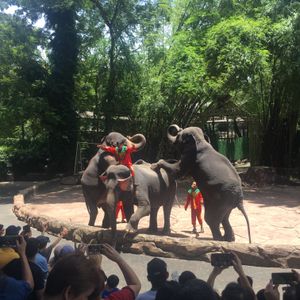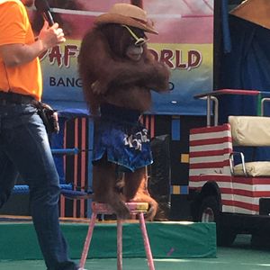 ここに行きたいためにバンコクへ。そして期待通りにオラウータンやトラ、アシカと一緒に写真が撮れて最高でした。体験談ではトラとオラウータンは450バーツでしたが、実際は600バーツでした。ガイドさんが早足で案内してくれたおかげでショーは前で見ることができましたが、ウエスタンショーは見なくてもいい内容です。
