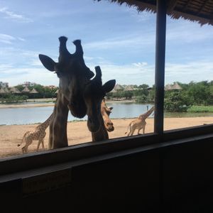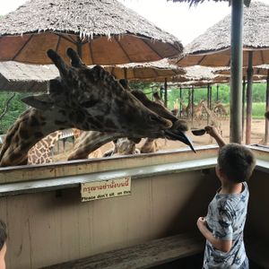 想像していた以上にキリンの飼育頭数の多さにびっくりです、あんなに目の前で餌やり体験をできるのは日本では考えられないと思います、餌代も100バーツ