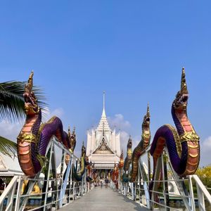 ワット・サマーン・ラッタナーラーム以外のお寺も、観光地というより現地の人々が日常的に参拝している場所で、金や銀の華やかさだけでなく、熱心に祈る人々の姿から強いパワーを感じました。ガイドさんは、お寺の成り立ちや歴史、参拝方法まで丁寧に説明してくれただけでなく、タイの文化や信仰についても教えてくれて、理解がぐっと深まりました。ユーモアもありつつ穏やかで優しい年配の女性で、写真スポットを教えてくれたり、こちらのペースに合わせてくれたりと、とても親しみやすく印象に残っています。