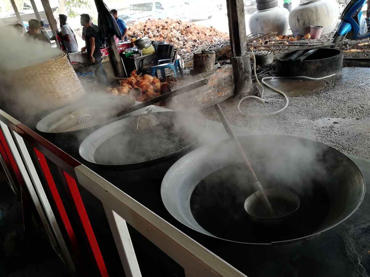 次に休憩がてら立ち寄るココナッツファームは正直まったく期待していなかったのですが、他の方のレビューにもあるとおり、中々面白い場所でした。個人的にはココナッツを煮詰めて砂糖を作っている釜に興味を惹かれます。釜に火をいれる燃料はココナッツの殻。捨てるところがないんですね。