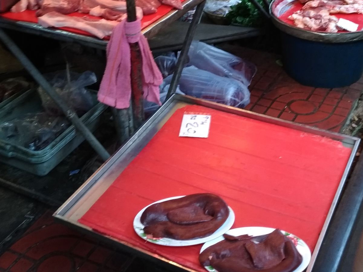 余談ですが、市場の脇の木には、ジャックフルーツの立派な実が成っていました。時期によってはこのような果物を間近で見られるかもしれないので、探してみると良いでしょう。